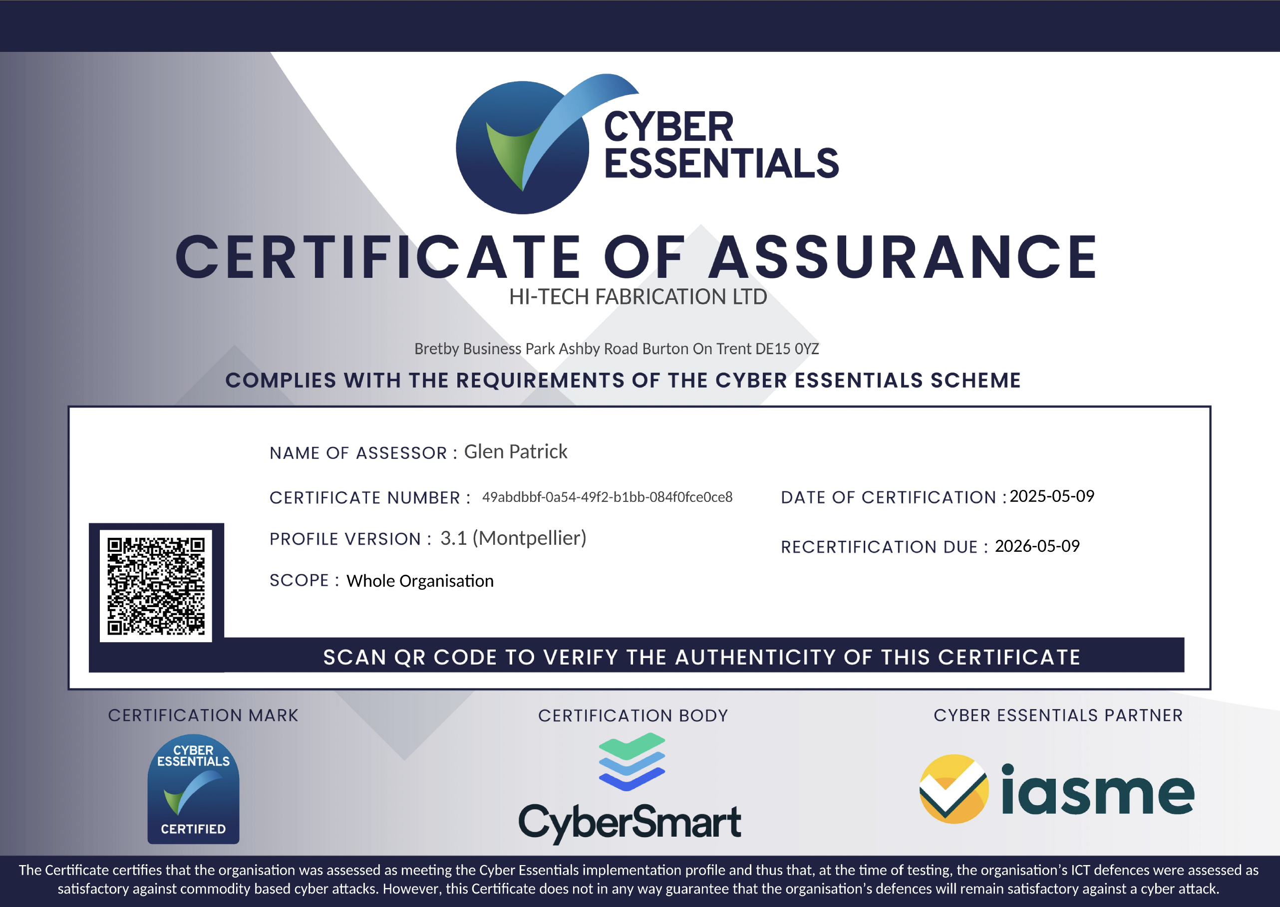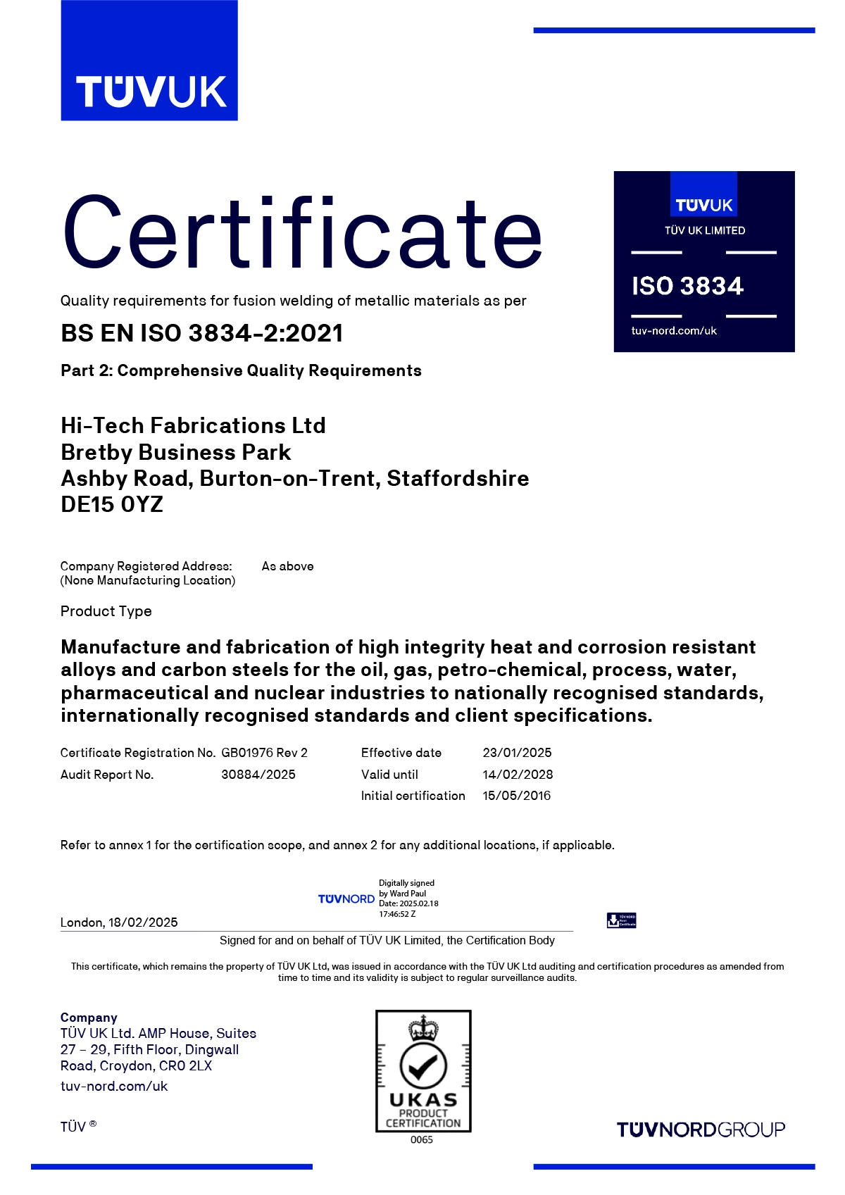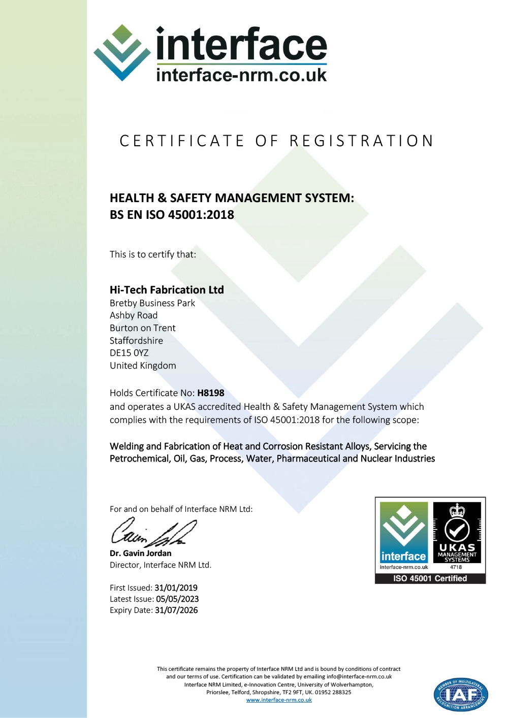 Hi-Tech Fabrication Ltd ISO45001 Certificate H8198 (ID 22803)